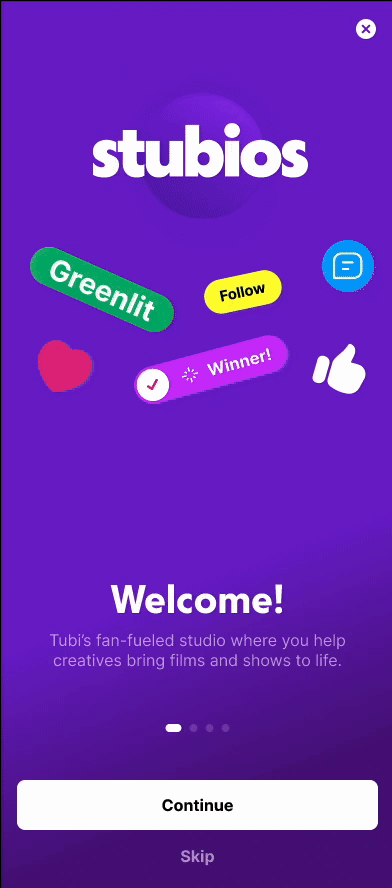Seamless Onboarding: A 4-step animated flow introduced new users to Stubios, making the experience clear, intuitive, and frictionless within the main Tubi app.